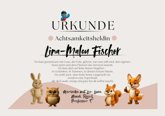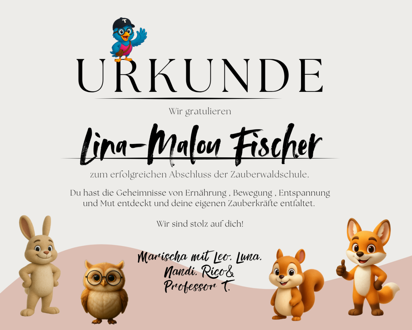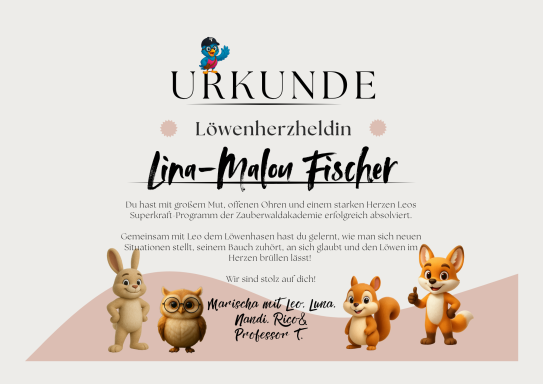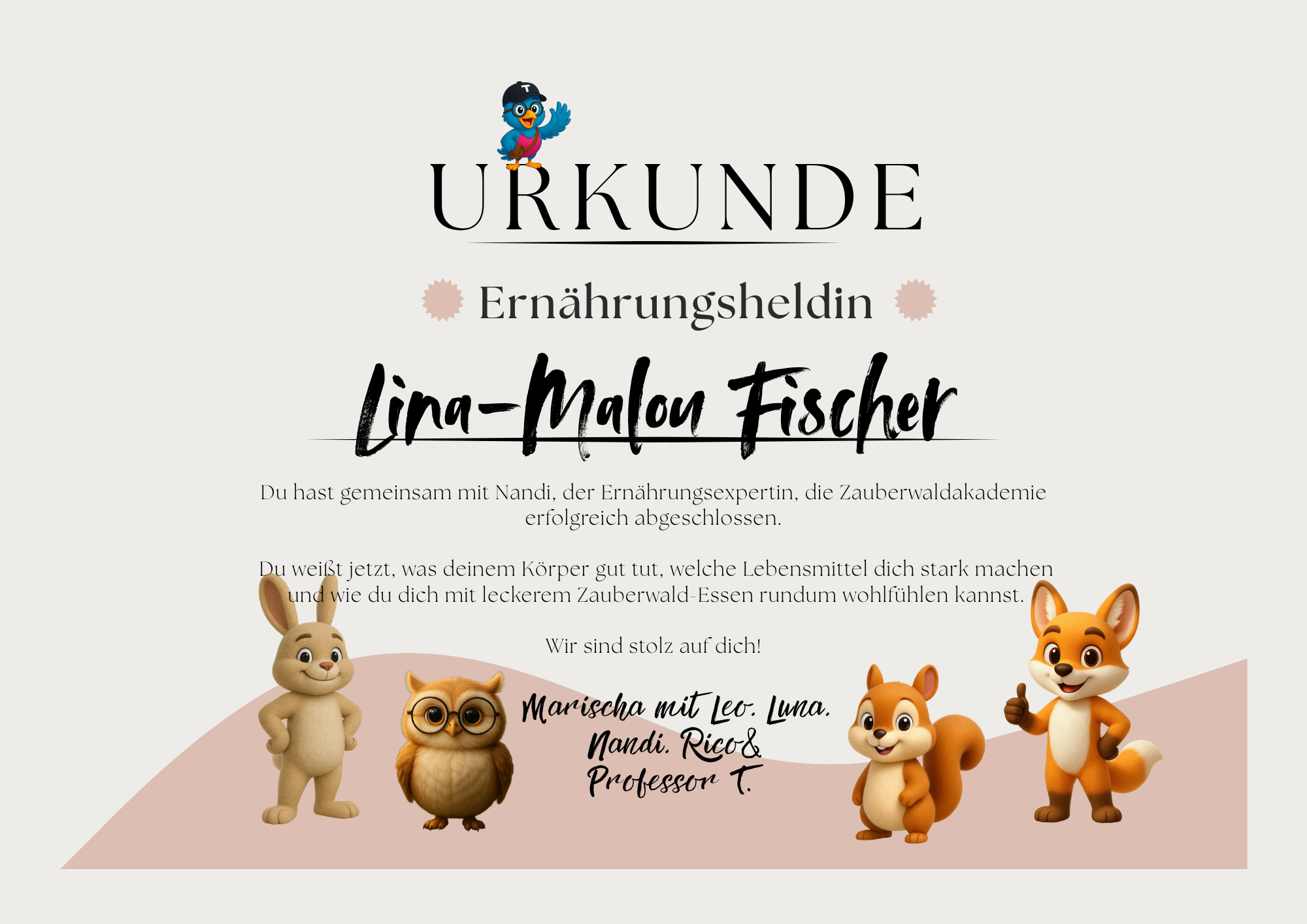 Fleiß und Wissen dürfen belohnt werden. Am Ende der Zauberwaldschule erhält jedes Kind eine urkunde und eine kleine Überraschung.